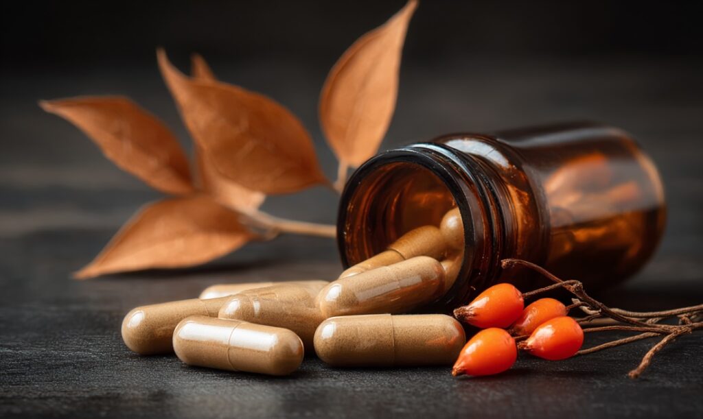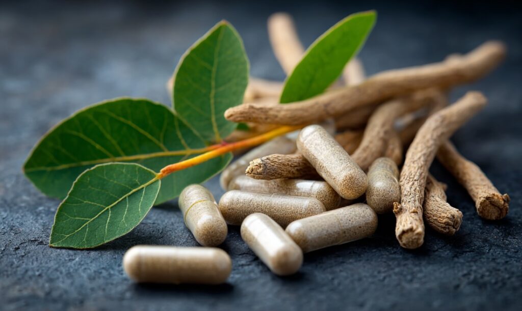 Важливо обирати стандартизовані екстракти з відомим вмістом вітанолідів (зазвичай 5–10%). Популярні форми: KSM-66, Sensoril.