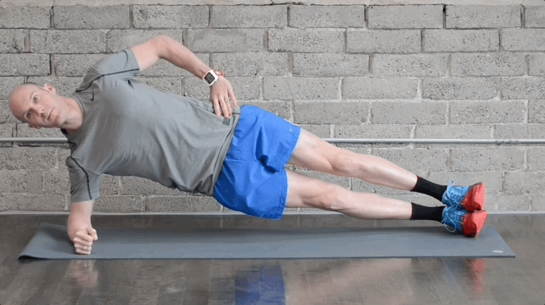 Під час виконання цієї вправи тіло повинне бути витягнуте в одну лінію й бути в одній площині (таз не виставляється назад), позиція ліктя – чітко під плечем. Ми пропонуємо два варіанти – зовсім для початківців й класичну бічну планку з опорою на передпліччя.
