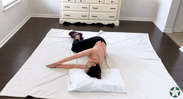 Чому корисно: ця вправа м’яко розтягує задню капсулу плеча та знімає напругу після тренувань або тривалого сидіння.