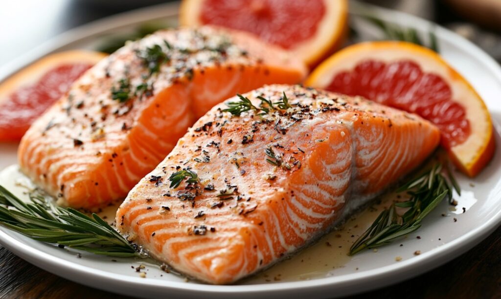 - Вечеря: риба, салат, підсушений тост та грейпфрут.