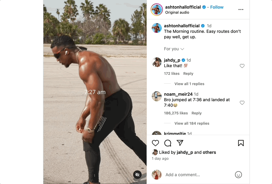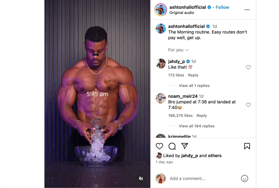 Відео ранкової рутини Ештона Холла (Ashton Hall)
