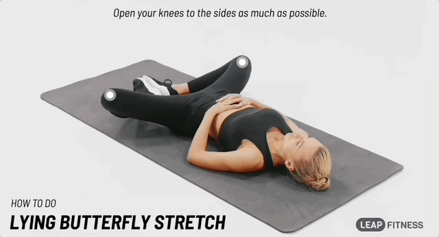 Ляж на спину і з’єднай підошви ніг разом, розвівши коліна у формі метелика. Розслабся. Також можна виконувати цю вправу сидячи. Для цього сядь рівно, зʼєднай разом стопи й підведи їх якомога ближче до таза, розведи коліна. Утримуй позу хоча б 30 секунд.