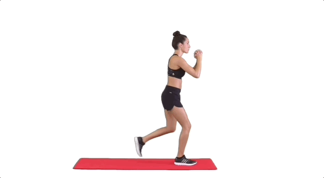 - Потім з силою відштовхнись від опорної (передньої) ноги, щоб повернутися у вихідне положення.