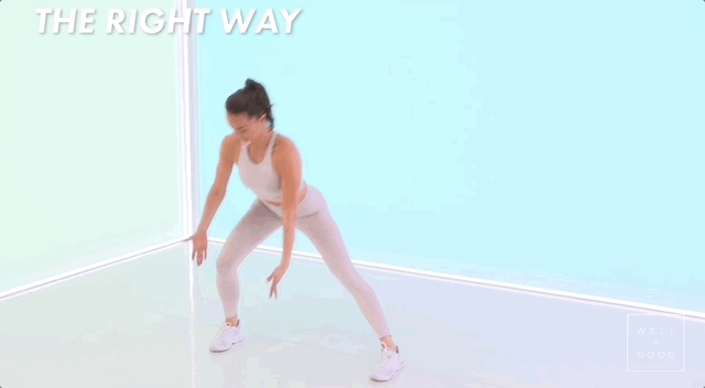 Під час виконання бокових випадів не забувай переносити вагу на робочу ногу й тягнутися тазом назад.