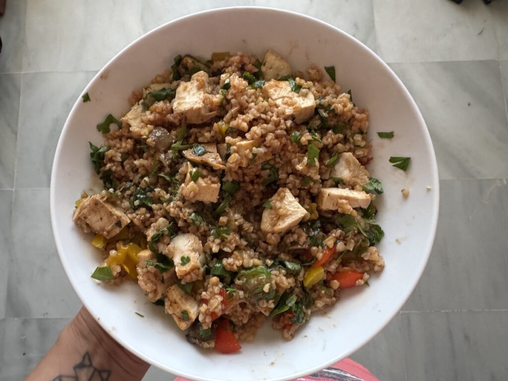 🍲 Обід: теплий салат з куркою, булгуром, овочами та гранатом