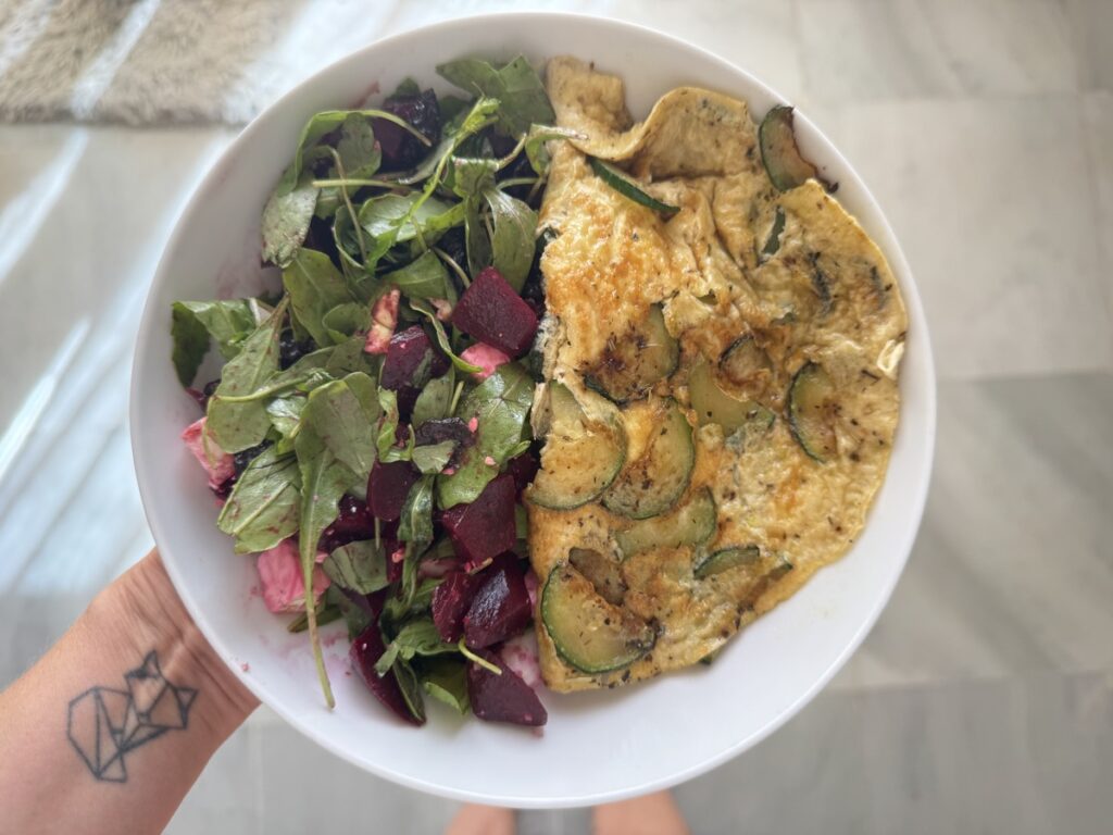 🍳 Сніданок: омлет з цукіні + салат з буряка, фети, руколи та горіхів