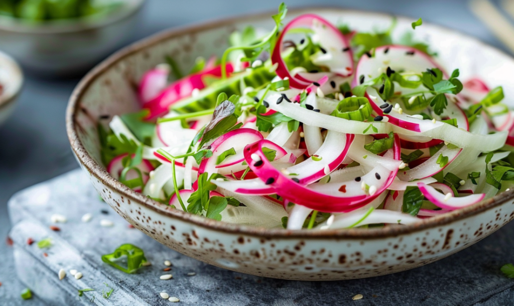 - 1 невелика кольрабі, очистити та нарізати тонкою соломкою;