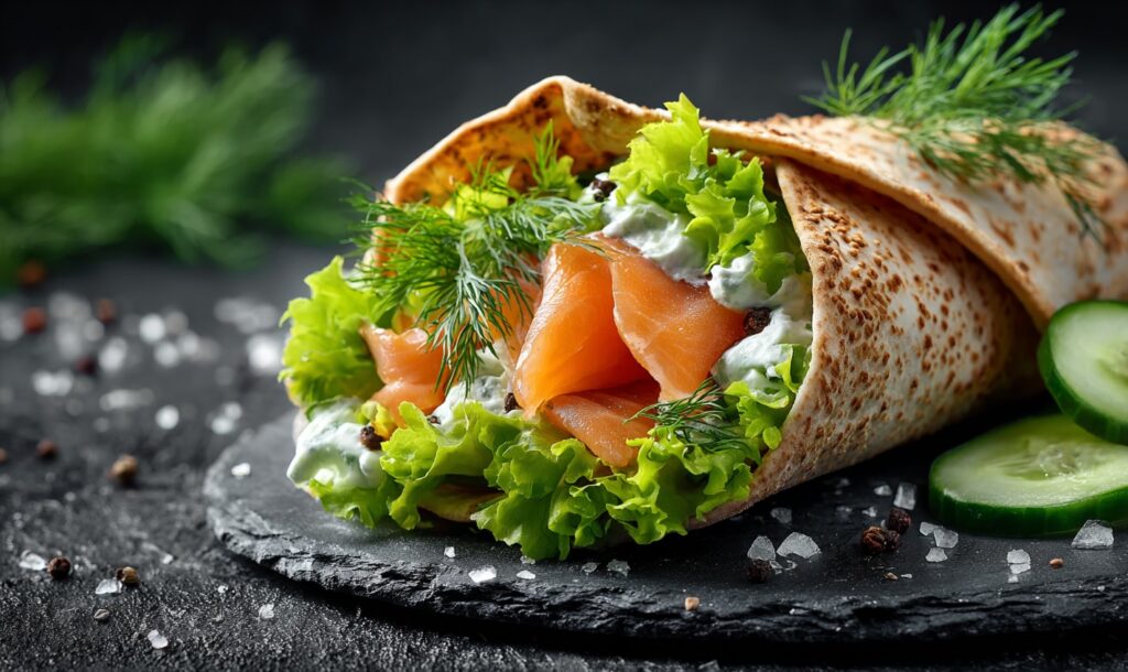 Тут ти просто готуєш холодний рол: лавaш → риба → зелень → огірок → трохи лимонного соку. Можна намазати лаваш вершковим сиром. Так ти зробиш цю страву поживнішою, смачнішою та додаси трохи соковитості.