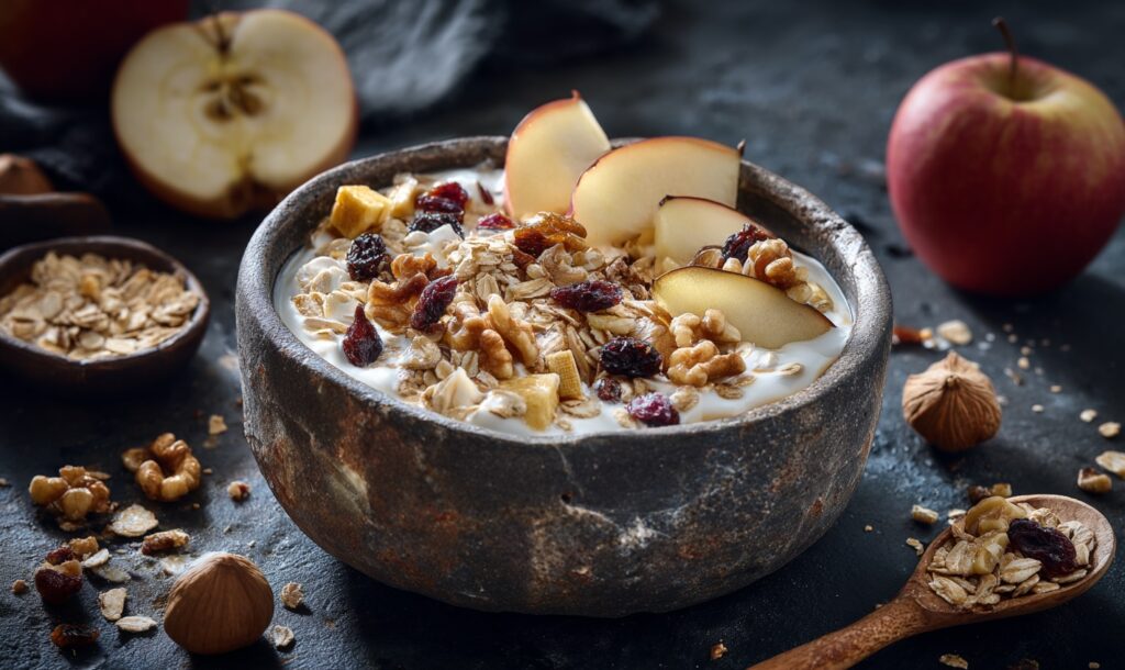 Мюслі з яблуком, йогуртом та горіхами