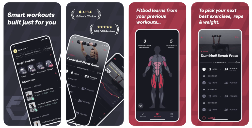 Fitbod – це фітнес-платформа, яка спеціально створена для покращення силових тренувань та витривалості за допомогою персоналізованих тренувань зі штучним інтелектом. Цей застосунок дозволяє зберігати та створювати власні силові тренування та тренування на витривалість згідно з твоїми уподобаннями.
