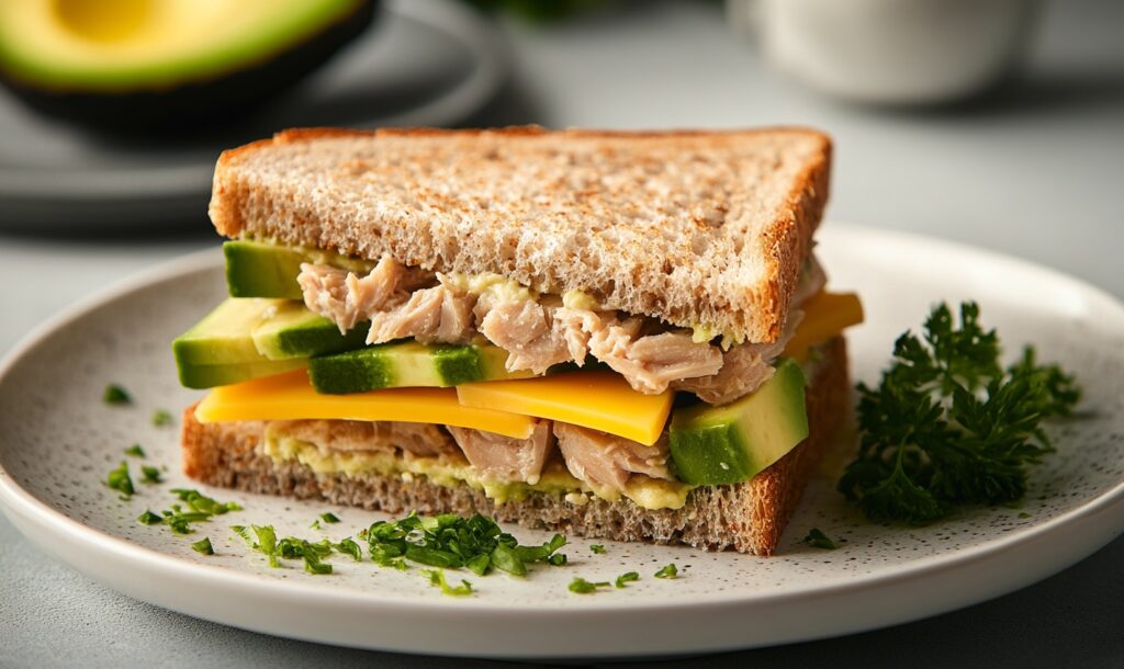 Сендвіч з консервованим тунцем, авокадо та сиром