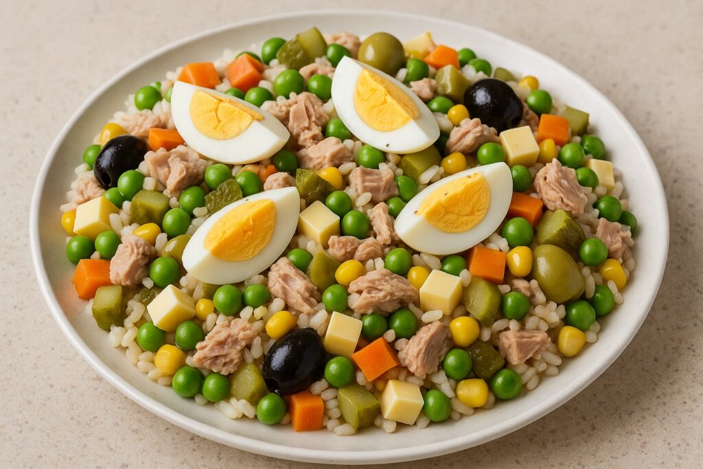 Італійський салат з консервованим тунцем, рисом та овочами