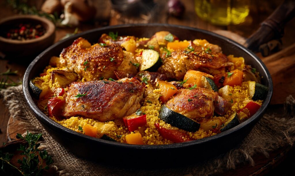 Курка з булгуром і тушкованими овочами