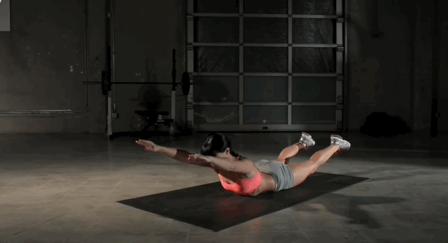 - Не відриваючи погляду від підлоги, підніми одночасно руки і ноги на кілька сантиметрів. Затримайся на кілька секунд й повернись у вихідне положення.