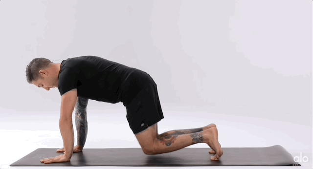 - Почни навкарачки, тримаючи руки на одній лінії з плечима, а коліна – на одній лінії зі стегнами.