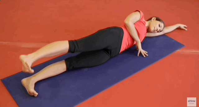 - Ляж на бік на підлогу з витягнутими ногами, стегна зведені разом, голова спирається на зігнуту у лікті руку.