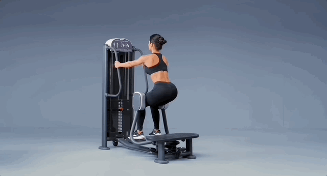 - Відрегулюй тренажер так, щоб ноги були разом, а потім візьмися за ручки збоку тренажера для опори.