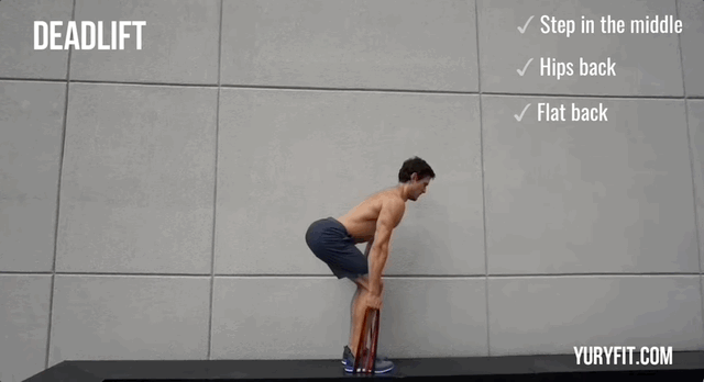 - Піднімися якомога вище, руками розтягни стрічку, підводячи її до грудей та стискаючи лопатки. Зроби коротку паузу вгорі й повернись у вихідне положення.