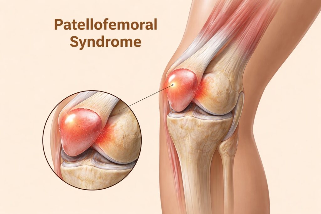 Одна з найчастіших причин хрусту з болем у активних людей — пателофеморальний синдром (біль у ділянці над коліном). Це стан, коли надколінок рухається не зовсім правильно у своїй борозні, що створює тертя і призводить до характерного хрусту та ниючого болю під надколінком.