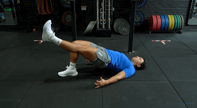 - Спираючись на другу стопу, підніми таз угору до прямої лінії від плечей до коліна.