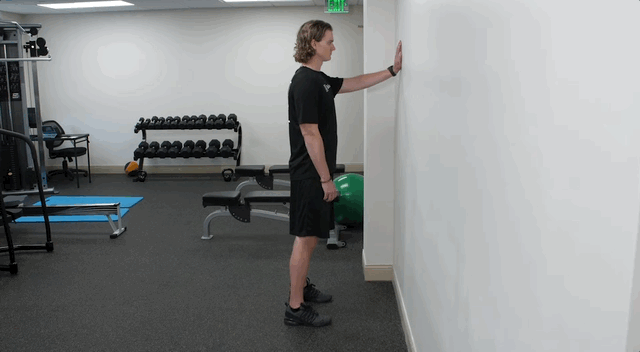 - Стань спиною до стіни, відступи ногами на 50–60 см від неї.