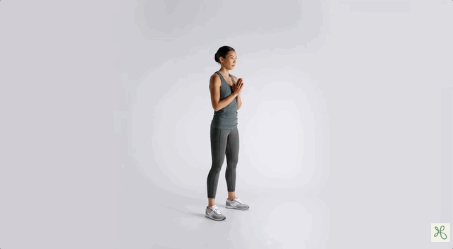 - Повільно опустись у максимально глибокий присід, п’яти на підлозі.