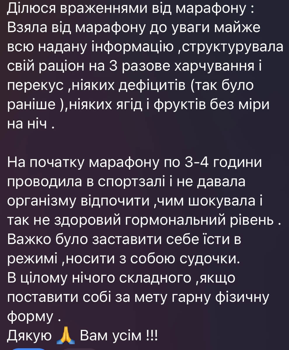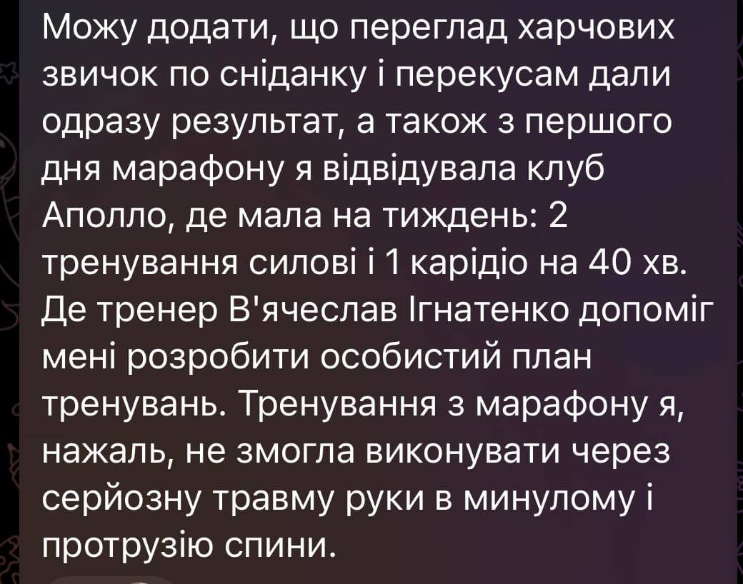 У кожного учасника марафону буде індивідуальна програма тренувань для тренажерної зали.