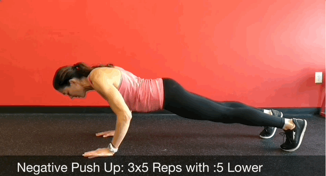 Негативные (отрицательные) отжимания помогают развить силу в груди, трицепсах и плечах.