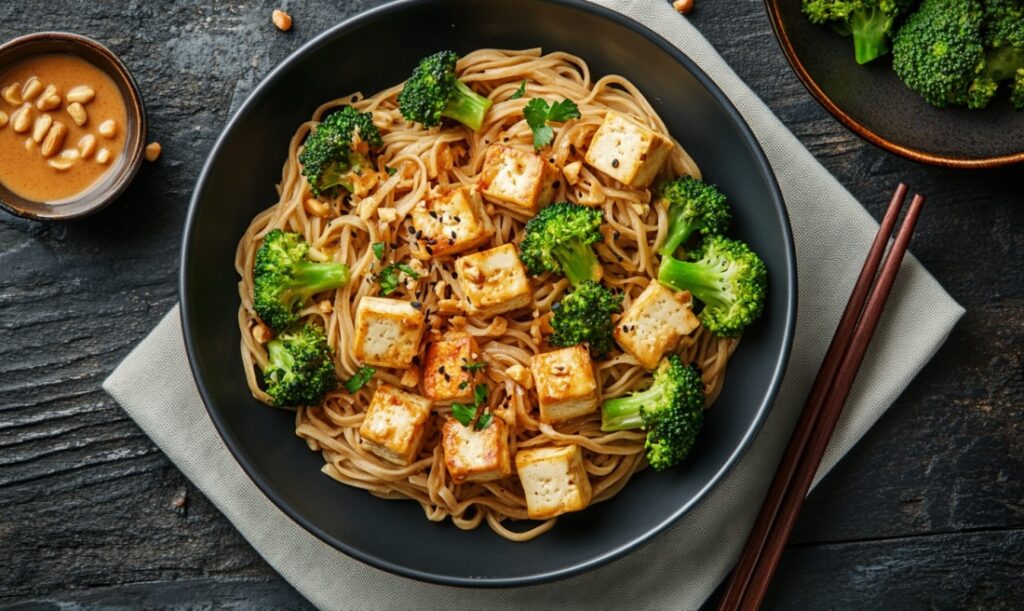 Постная (веганская) лапша из тофу с миндальным соусом