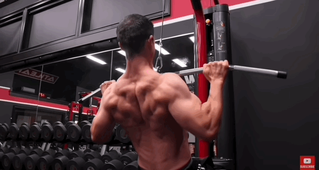 Интересно, что у этого упражнения есть несколько вариаций. Если подтягивать вес верхним (прямым) хватом чуть шире плеч к нижней части груди, то больше будет работать верхняя и средняя часть спины.