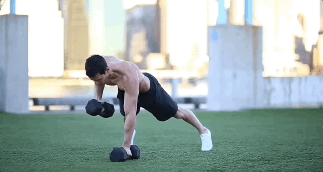 Поочередная тяга гантелей в положении планки (Renegade Row)