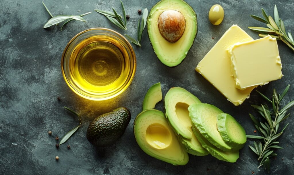 Жиры содержатся в масле, сливочном масле, авокадо, орехах, семенах, мясе и жирной рыбе.